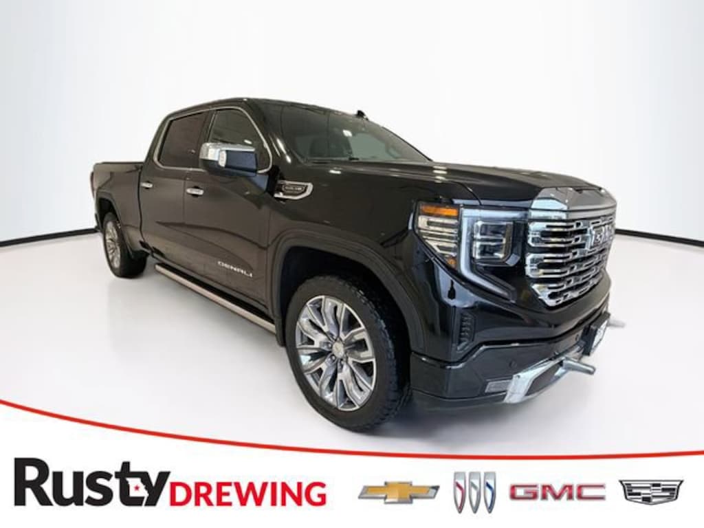 Certified. CARFAX One-Owner. Onyx Black 2023 GMC Sierra 1500 Denali 4WD 10-Speed Automatic EcoTec3 5.3L V8 Sierra 1500 Denali, 4D Crew Cab, EcoTec3 5.3L V8, 10-Speed Automatic, 4WD, Onyx Black, Atmosphere/Brownstone Leather, 10-Way Power Driver Seat Adjuster w/Lumbar, 10-Way Power Passenger Seat Adjuster w/Lumbar, 120-Volt Bed Mounted Power Outlet, 120-Volt Instrument Panel Power Outlet, 170 Amp Alternator, 2 Charge/Data USB Ports Inside Center Console, 2 Type-C Charge-Only Rear USB Ports, 2 USB Ports, Adaptive Cruise Control, Apple CarPlay/Android Auto, Auto-Locking Rear Differential, Auxiliary External Transmission Oil Cooler, Bed View Camera, Chrome Header w/Signature Denali Chrome Grille, Chrome Recovery Hooks, Chrome Wheel To Wheel Assist Steps, Color-Keyed Carpeting Floor Covering, Compass, Deep-Tinted Glass, Denali Reserve Package, Electric Rear-Window Defogger, Electrical Steering Column Lock, Floor-Mounted Center Console, Front Rainsensing Wipers, GMC Connected Access Capable, GMC MultiPro Power Steps, HD Surround Vision, Heated 2nd Row Outboard Seats, Heated Driver & Front Outboard Passenger Seating, Heated front seats, Heated steering wheel, Heavy-Duty Air Filter, Hill Descent Control, Hitch Guidance, Hitch Guidance w/Hitch View, In-Vehicle Trailering App, Integrated Trailer Brake Controller, Keyless Open & Start, LED Cargo Area Lighting, Multicolor 15 Diagonal Head-Up Display, Navigation System, OnStar & GMC Connected Services Capable, Perimeter Lighting, Power Door Locks, Power Front Passenger Windows w/Express Up/Down, Power Front Windows w/Driver Express Up/Down, Power Rake & Telescoping Steering Column, Power Rear Windows w/Express Down, Power Sliding Rear Window w/Rear Defogger, Power Sunroof, Preferred Equipment Group 5SA, Premium Bose 7-Speaker Sound System, Push Button Start, Rear Camera Mirror, Rear Cross Traffic Braking, Rear Pedestrian Detection, Rear Wheelhouse Liners, Remote Vehicle Starter System, SiriusXM w/360L, Spray-On Pickup Bed Liner w/Denali Logo, Steering Wheel Audio Controls, Technology Package, Theft Deterrent System (Unauthorized Entry), Trailer Camera Provisions, Trailer Side Blind Zone Alert, Trailering Package, Ultrasonic Front & Rear Park Assist, Universal Home Remote, Ventilated Driver & Front Passenger Seats, Ventilated front seats, Wheel Locks (Set of 4) (LPO), Wheels: 22 x 9 Painted Aluminum, Wi-Fi Hotspot Capable, Wireless Charging, Wireless Phone Projection.