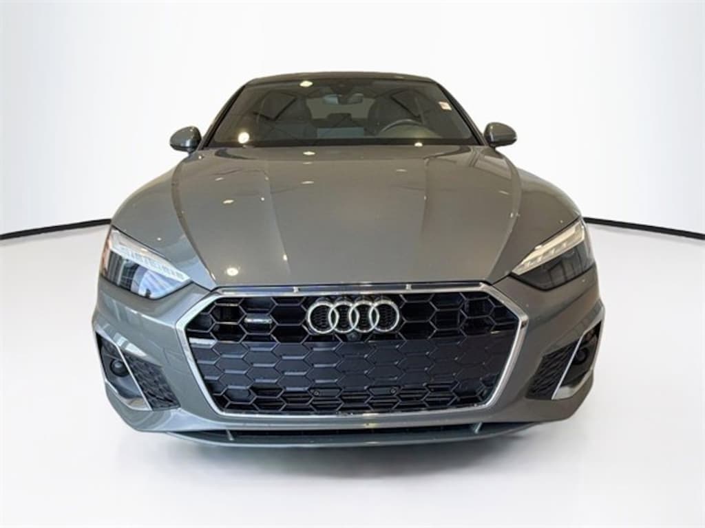 Gray Metallic 2023 Audi A5 Sportback 45 S line Premium Plus quattro quattro 7-Speed Automatic S tronic 2.0L 4-Cylinder TFSI A5 Sportback 45 S line Premium Plus quattro, 4D Hatchback, 2.0L 4-Cylinder TFSI, 7-Speed Automatic S tronic, quattro, Gray Metallic, Black Leather, 2 Rear USB Charge Ports, Adaptive Cruise Control, Alarm System w/Motion Sensor, Audi Active Lane Assist, Audi Advanced Key, Audi Connect PLUS, Audi Phone Box, Audi Side Assist w/Pre Sense Rear, Audi Virtual Cockpit Plus, Auto-Dimming Exterior Mirrors w/Memory, Bang & Olufsen Sound System w/3D Sound, Brushed Aluminum Inlays, Convenience Package, Driver Seat Memory, Exterior Parking Camera Rear, Hands-On Detection Steering Wheel, Heated front seats, Heated Front Sport Seats, Heated Steering Wheel, Leather/Dinamica Seating Surfaces, Leatherette Covered Center Console & Door Armrests, MMI Navigation Plus, Navigation Package, Navigation System, Parking System Plus (Front/Rear Acoustic Sensors), Power Folding Exterior Mirrors, Power Liftgate, Power moonroof, Premium Plus, S-Line Interior Package, SiriusXM w/360L, Stainless Steel Pedal Caps, Top View Camera System, Traffic Jam Assist.