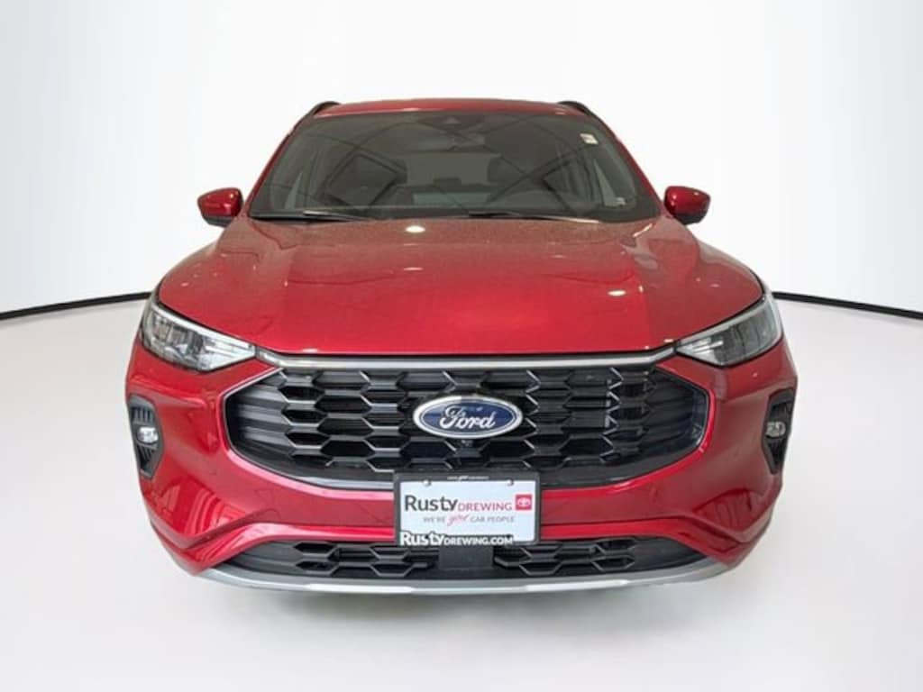 CARFAX One-Owner. Red Metallic 2024 Ford Escape ST-Line Select AWD 8-Speed Automatic EcoBoost 2.0L I4 GTDi DOHC Turbocharged VCT Escape ST-Line Select, 4D Sport Utility, EcoBoost 2.0L I4 GTDi DOHC Turbocharged VCT, 8-Speed Automatic, AWD, Red Metallic, Ebony Cloth, 10-Way Power Driver's Seat, 12.3" Productivity Screen in Instrument Cluster, 360-Degree Camera w/Split View, 6-Way Power Passenger Seat, Adaptive Cruise Control w/Stop-and-Go, Body Color Mirrors, Connected Navigation, Equipment Group 401A, Exterior Parking Camera Rear, Ford Co-Pilot360 Assist 2.0, HD Radio, Heated front seats, Heated steering wheel, Heated Vinyl/Cloth Front Sport Contour Bucket Seats, Intersection Assist, Memory Package, Neutral Towing Capability, Power Liftgate, Radio: B&O Sound System by Bang & Olufsen, Rear Parking Sensor, Reverse Brake Assist, Roof rack: rails only, Speed Sign Recognition, SYNC 4 w/Enhanced Voice Recognition, Tech Pack #2, Wheels: 18" Rock Metallic Painted Aluminum, Wireless Charging Pad.