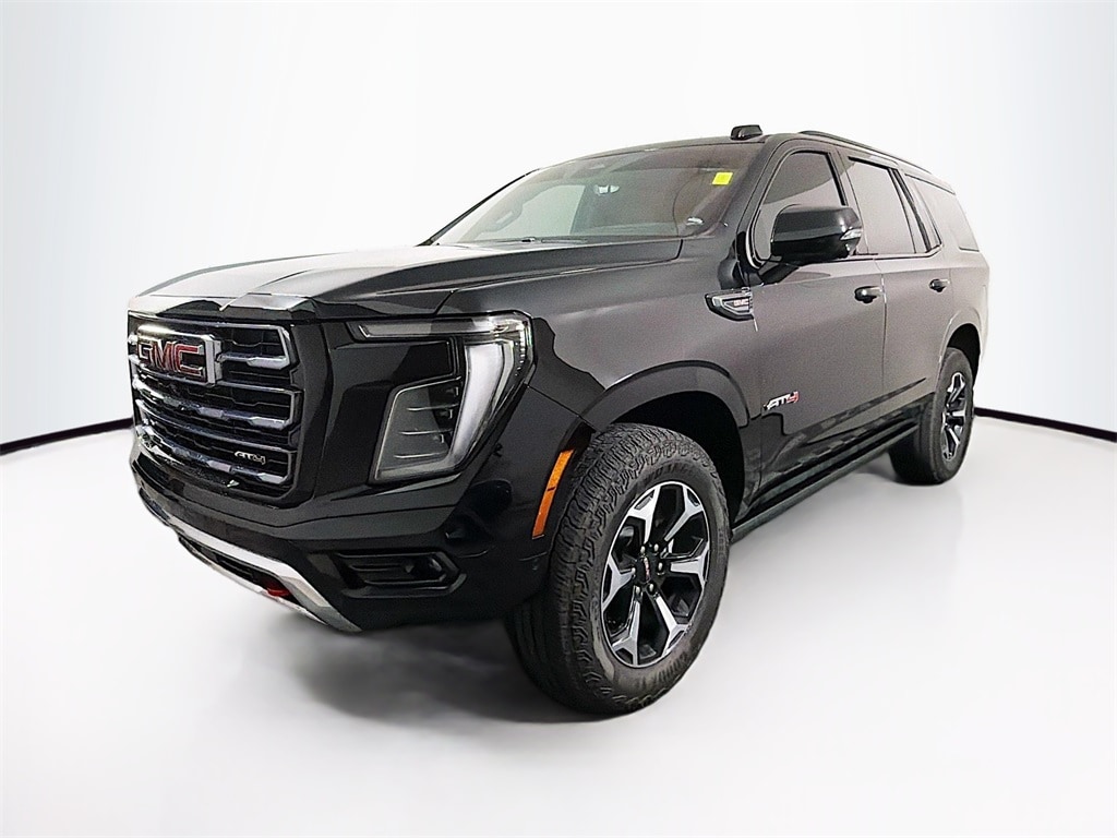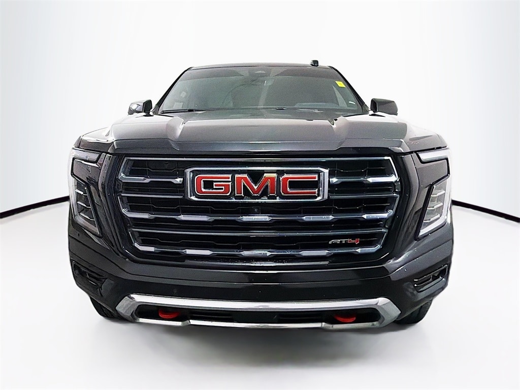 Clean CARFAX. Onyx Black 2025 GMC Yukon AT4 4WD 10-Speed Automatic with Overdrive EcoTec3 5.3L V8 Back Up Camera, Moonroof, Leather, Heated Seats, Yukon AT4, 4D Sport Utility, EcoTec3 5.3L V8, 10-Speed Automatic with Overdrive, 4WD, Onyx Black, Forest Storm With Mahogany Accents Leather, 15" Diagonal Multi-Color Head-Up Display, 4-Way Power Driver Lumbar Seat Adjuster, 4-Way Power Front Passenger Lumbar Seat Adjuster, Advanced Security Package, Apple CarPlay/Android Auto, AT4 Premium Package, AutoSense Hands-Free Power Liftgate, Black Roof-Mounted Luggage Rack Side Rails, Body-Color Door Handles, Bose 10-Speaker Surround with CenterPoint, Bright Front and Rear Door Sill Plates, Dual Exhaust System, Dual-Pane Panoramic Power Sunroof, Exterior Parking Camera Rear, Floor Console, Front dual zone A/C, Front High-Approach Angle Fascia, Glass Breakage Sensor, Heated Driver and Front Passenger Seats, Heated front seats, Heated steering wheel, Heavy-Duty Air Filter, Hill Descent Control, Inside Rearview Auo-Dimming Rear Camera Mirror, Magnetic Ride Control Suspension, Navigation system: GMC Connected Navigation, Perforated Heather and Ventilated Driver and Front Passenger Seats, Perforated Leather Seating Surfaces, Power Release 2nd Row Bucket Seats, Power Tilt and Telescopic Steering Column, Power-Retractable Assist Steps, Preferred Equipment Group 4SB, Red Horizontal-Mounted Recovery Hooks, Technology Package, Theft-Deterrent Alarm System, Vehicle Inclination Sensor, Vehicle Interior Movement Sensor, Ventilated front seats, Wheels: 20" x 9" Machined and Painted.